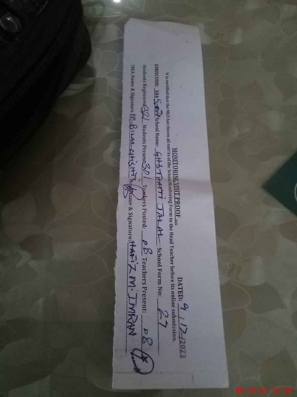 | EMIS Code: 38450020 | Name of School: GHS THATHI JALAL | |||