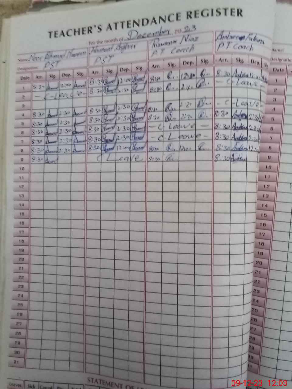 | CNIC | Full Name | Designation | R/C | Absence During Last Calender Month |