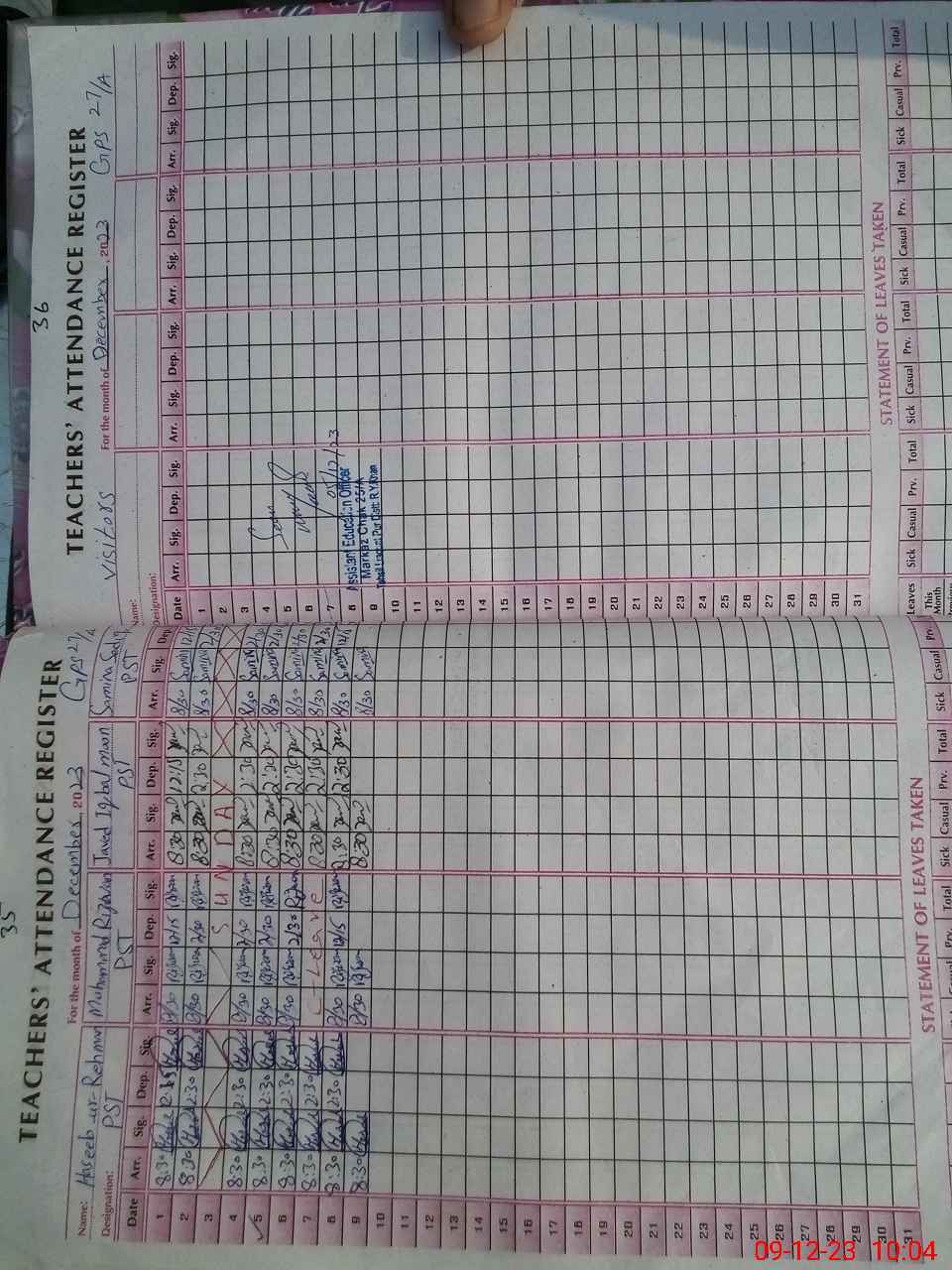| Name: MU**** RI**** Designation: (School Headmaster's/Headmistress's) PST Phone/Cell Number: 03**** |