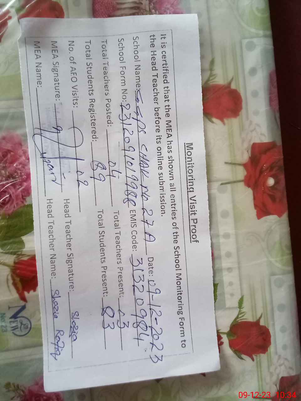 | EMIS Code: 31320984 | Name of School: GGPS CHAK 27/A | |||