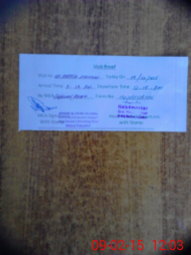 | Monitoring Date: 09-02-2015 | Start Time: 09-02-2015 11:28 AM | End Time: 09-02-2015 12:04 PM | Name of MEA: Hi**** Al**** Kh**** (R**** | |