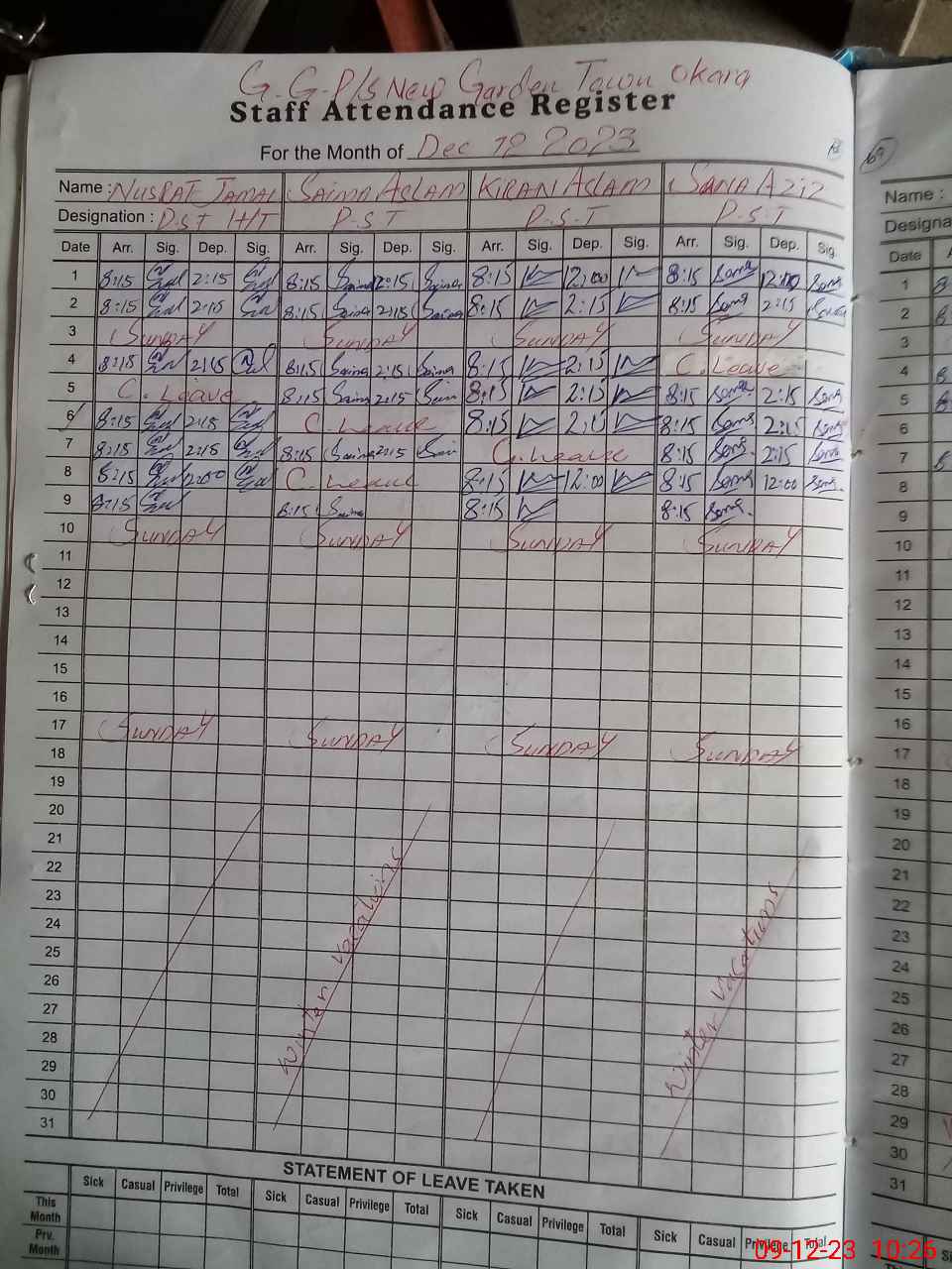 | Leave | Duty | Absent | Maternity | Medical | Ex- Pak |
