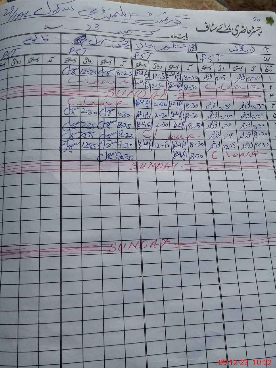 | CNIC | Full Name | Designation | R/C | Absence During Last Calender Month |