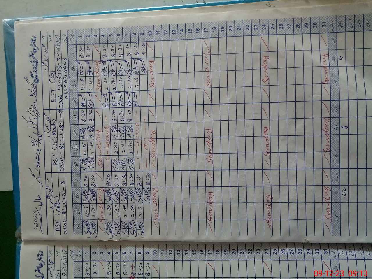 | CNIC | Full Name | Designation | R/C | Absence During Last Calender Month |