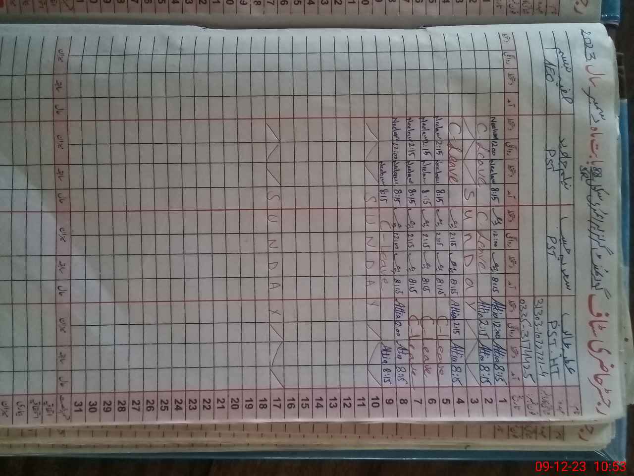 | CNIC | Full Name | Designation | R/C | Absence During Last Calender Month |