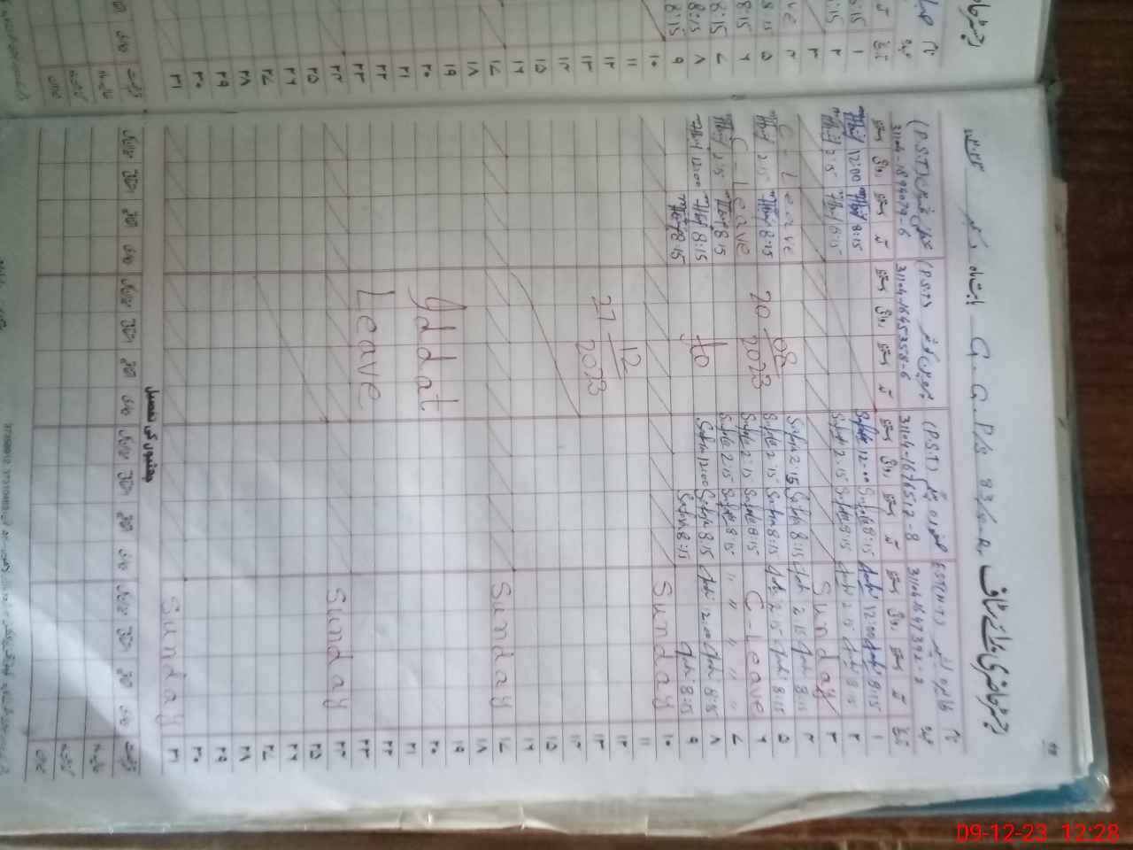 | CNIC | Full Name | Designation | R/C | Absence During Last Calender Month |