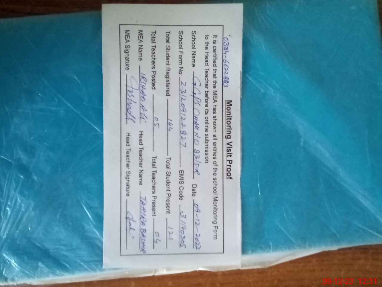 | Attendance Register | Head Teacher | MEA with School | Visit Proof |