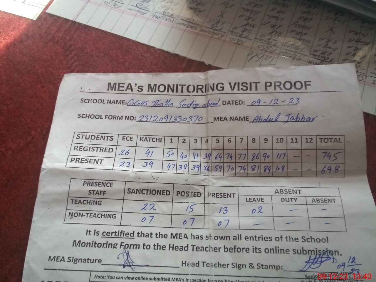 | EMIS Code: 36440059 | Name of School: GGHS THATHA SADIQ ABAD JAHANIAN | |||