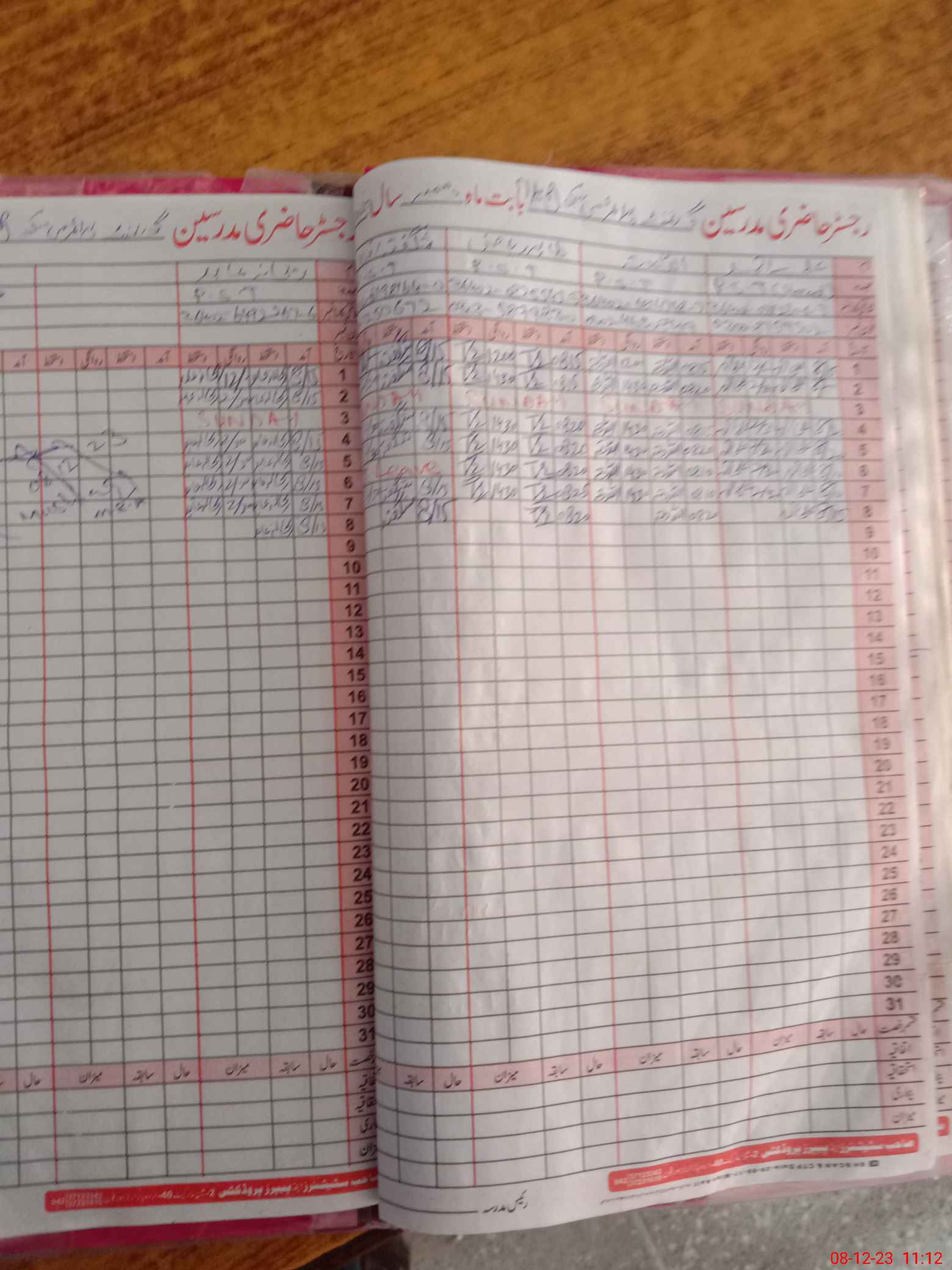 | CNIC | Full Name | Designation | R/C | Absence During Last Calender Month |