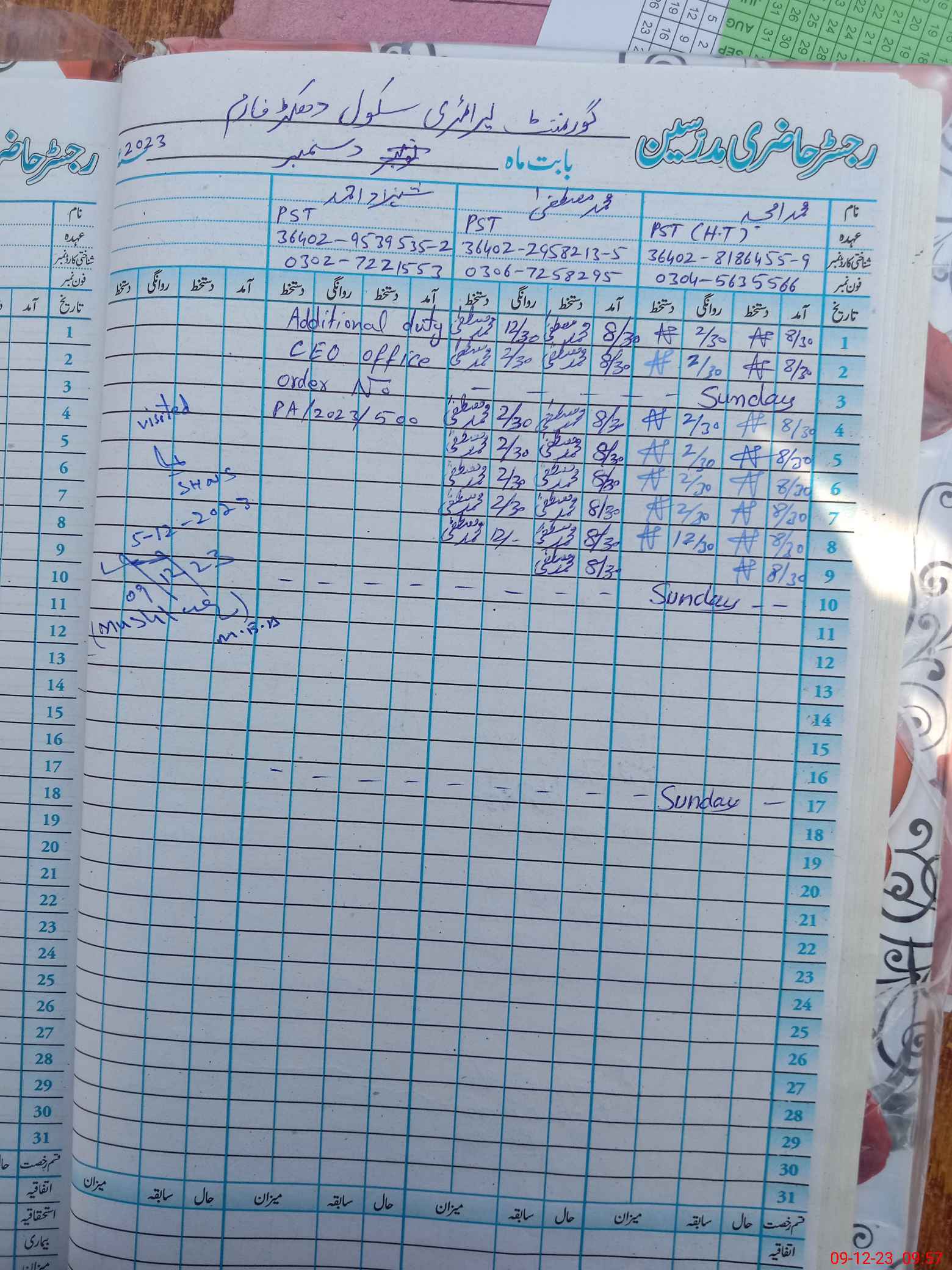| Name: MU**** MU**** Designation: (School Headmaster's/Headmistress's) PST Phone/Cell Number: 03**** |
