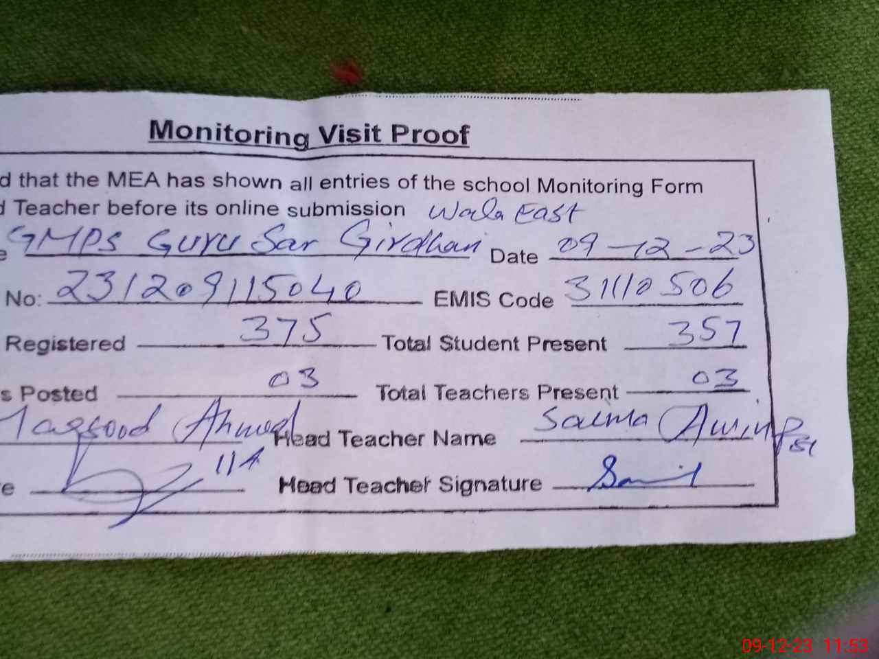 | EMIS Code: 31110506 | Name of School: GMPS GURU SAR GIRDHARI WALA EAST | |||