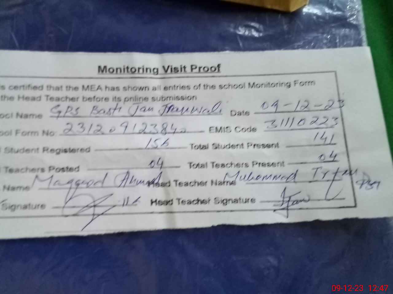 | EMIS Code: 31110223 | Name of School: GPS BASTI JAN JRANWALI | |||