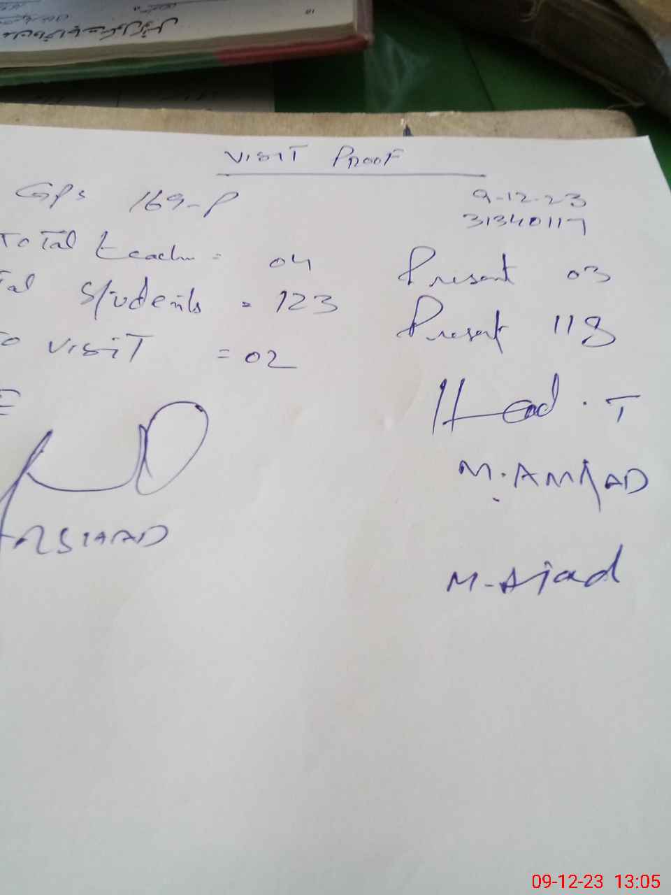 | EMIS Code: 31340117 | Name of School: GPS CHAK NO 169/P | |||