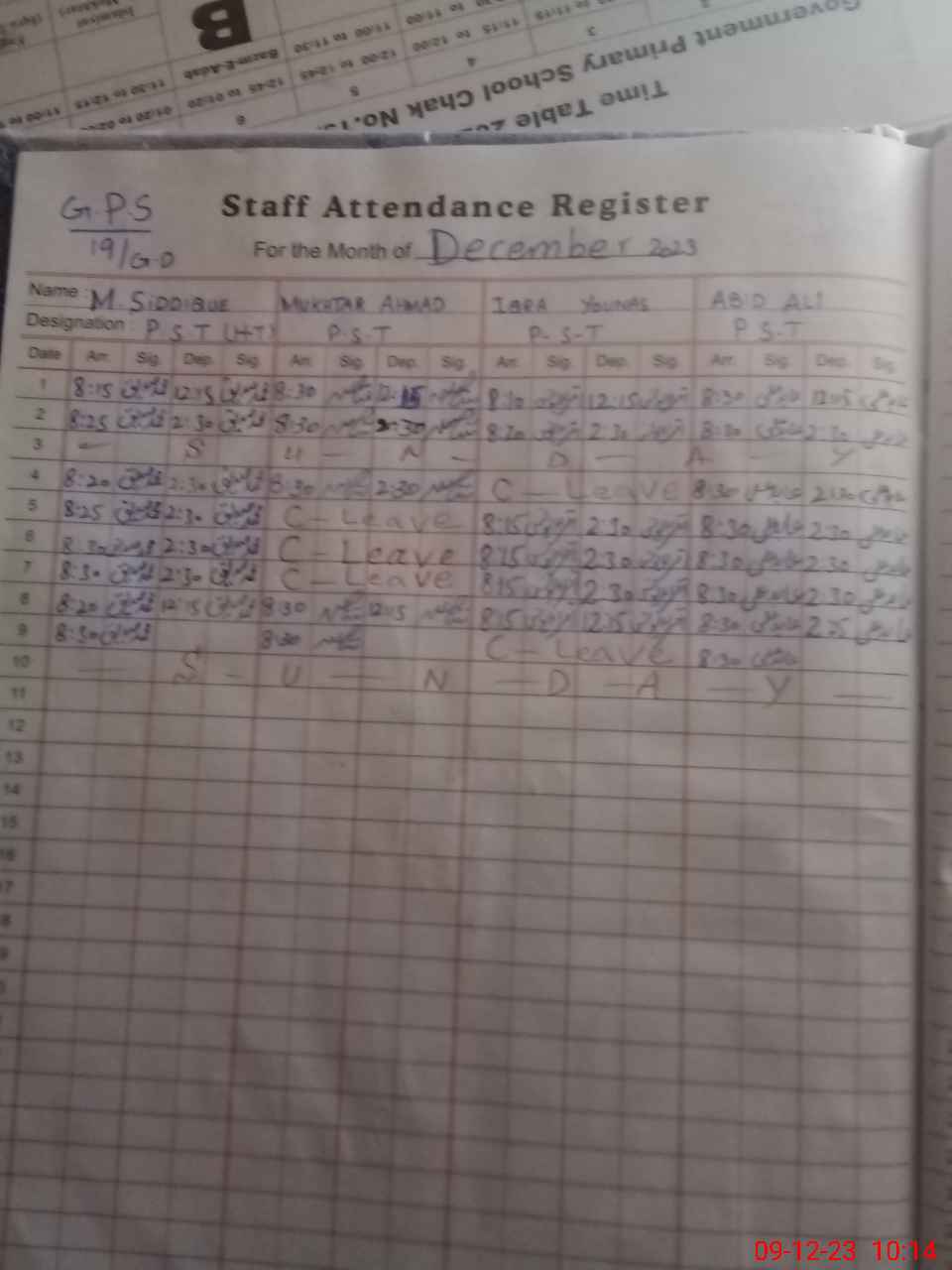 | CNIC | Full Name | Designation | R/C | Absence During Last Calender Month |