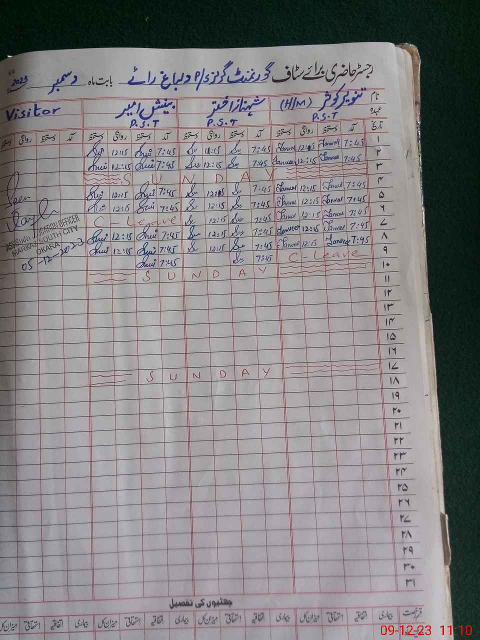| CNIC | Full Name | Designation | R/C | Absence During Last Calender Month |