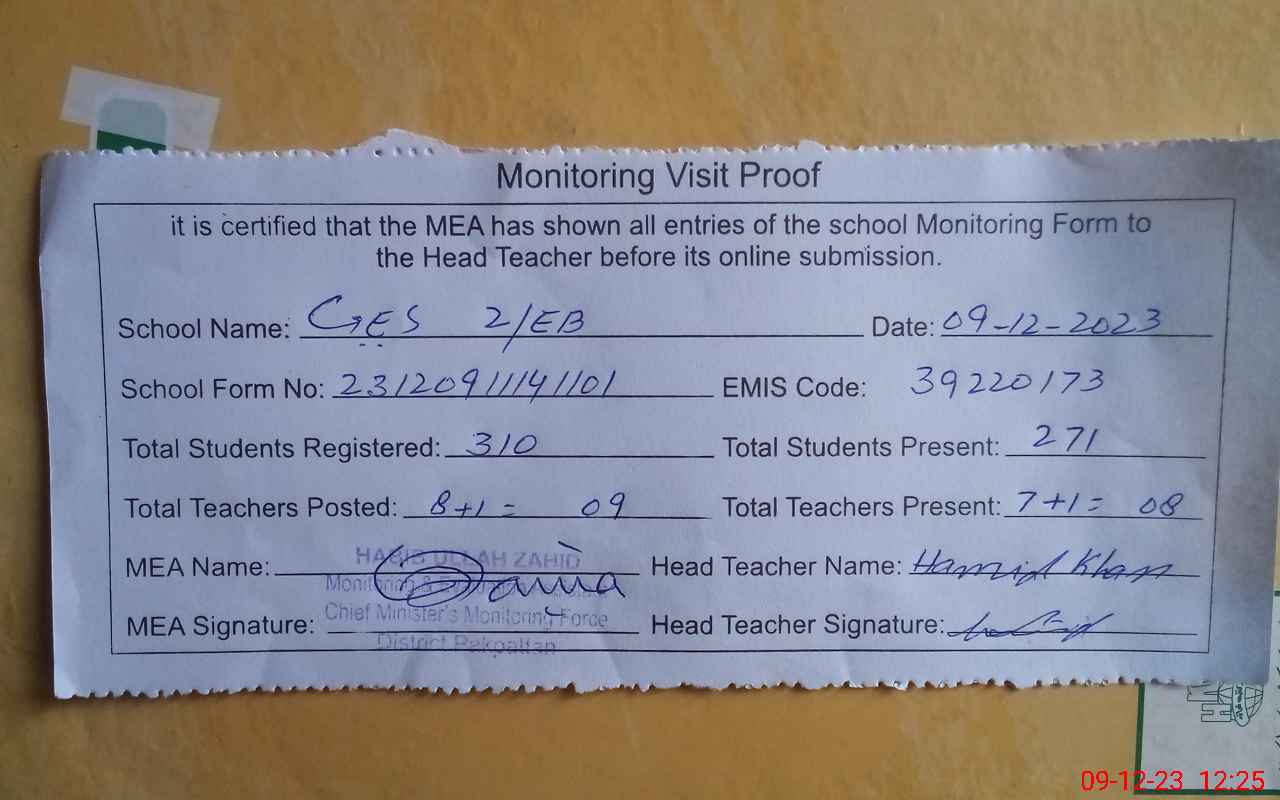 | Certified that this School was Inspected by the Undersigned MEA/DMO Today and the Information Stated Above is as Per Record. | |||||
