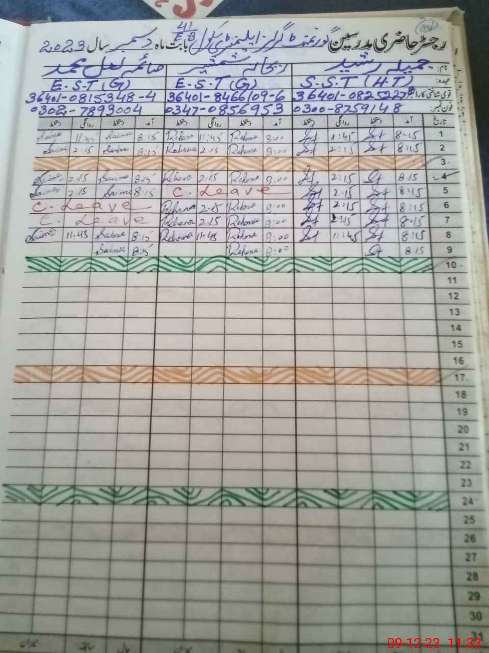 | Name: JA**** RA**** Designation: (School Headmaster's/Headmistress's) SST (GENERAL) Phone/Cell Number: 03**** |