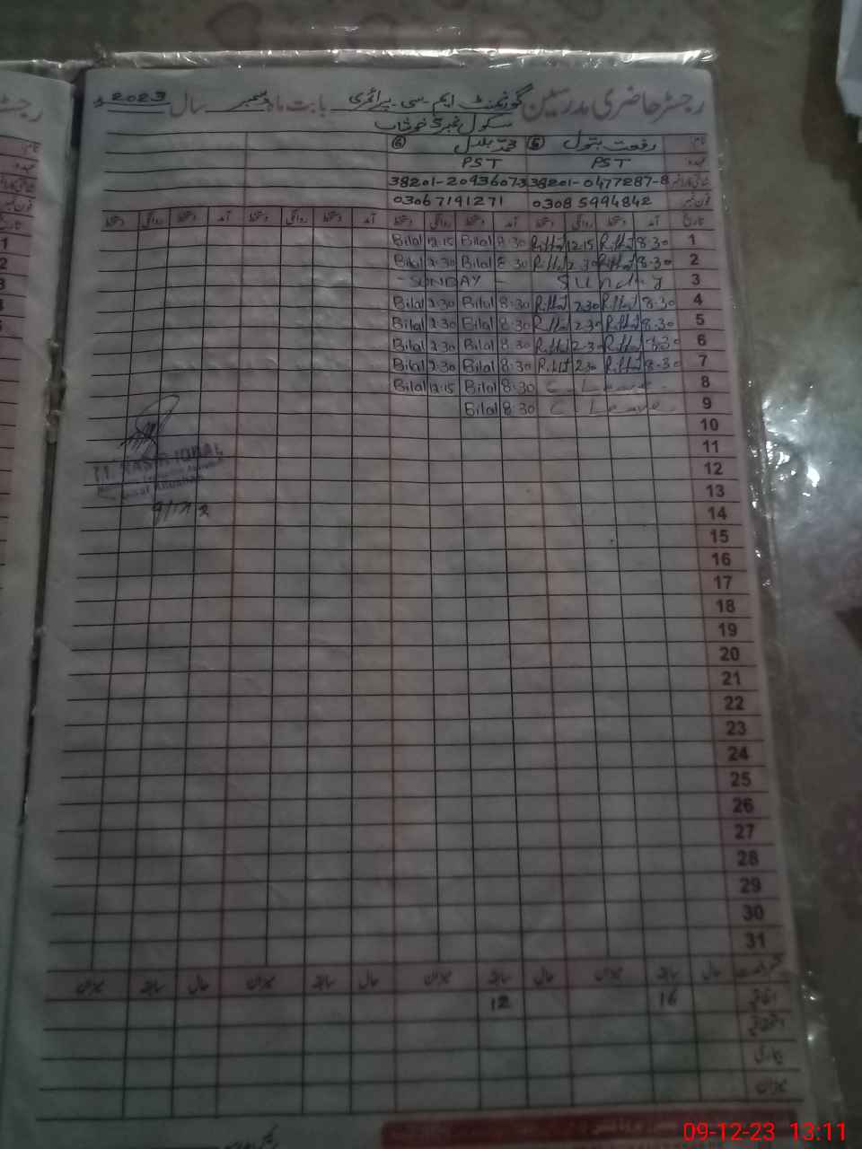| Name: Sa**** Kh**** Designation: (School Headmaster's/Headmistress's) PST Phone/Cell Number: 03**** |