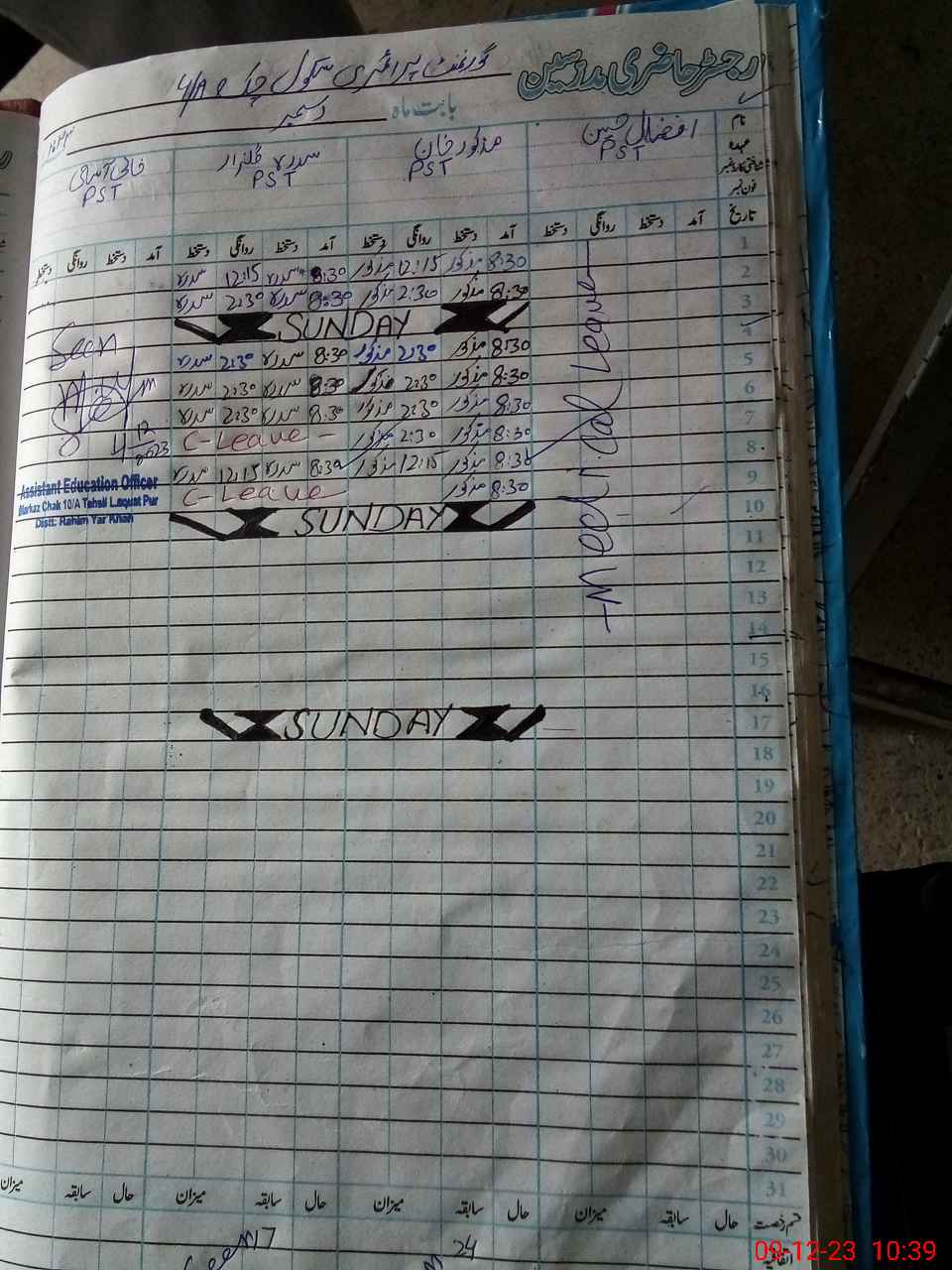 | Name: Ma**** Kh**** Designation: (School Headmaster's/Headmistress's) PST Phone/Cell Number: 03**** |