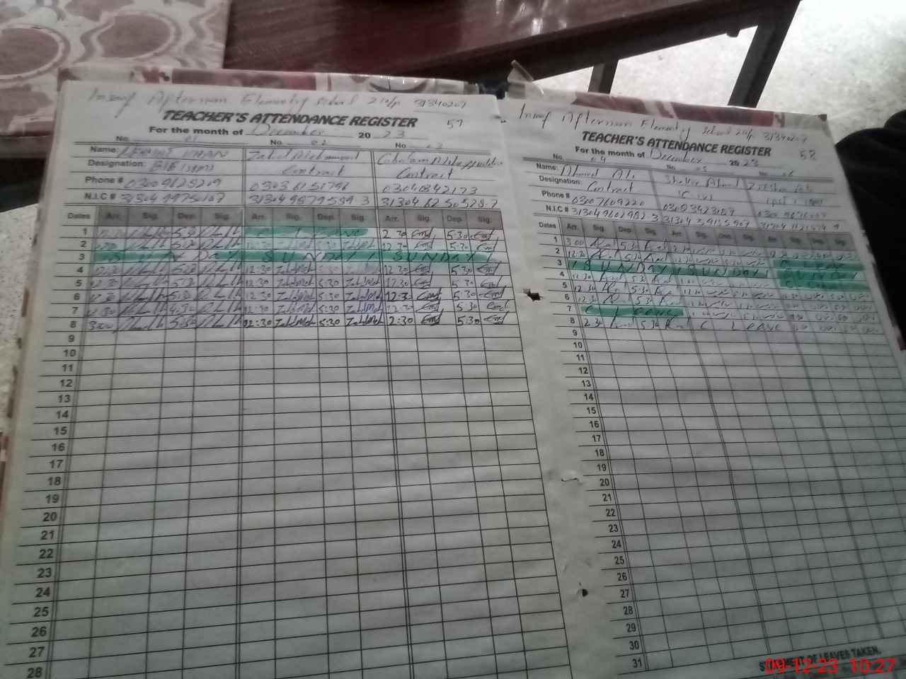 | CNIC | Full Name | Designation | R/C | Absence During Last Calender Month |
