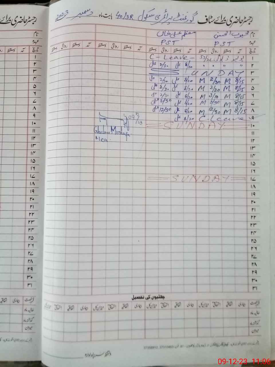 | CNIC | Full Name | Designation | R/C | Absence During Last Calender Month |