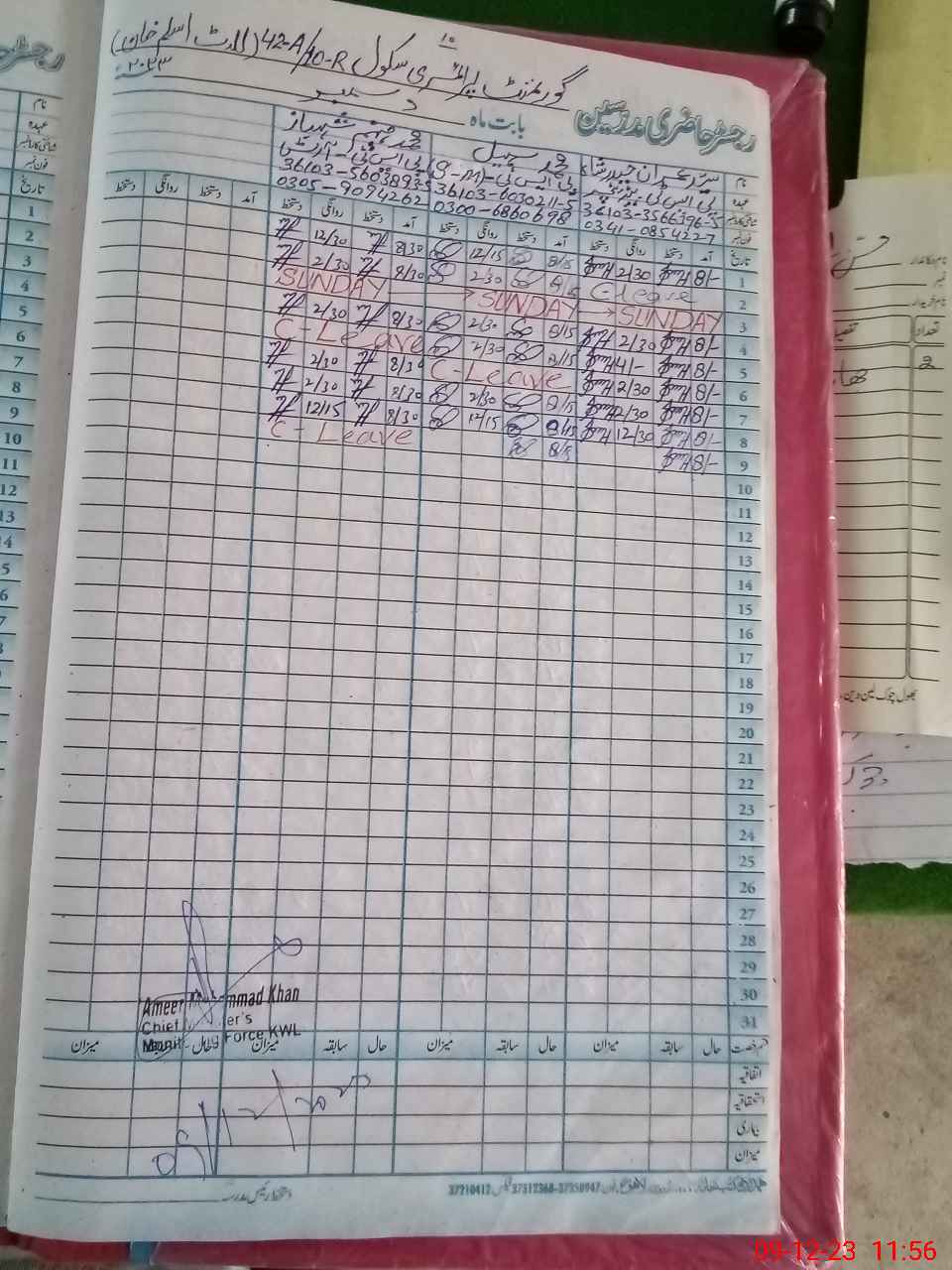 | CNIC | Full Name | Designation | R/C | Absence During Last Calender Month |