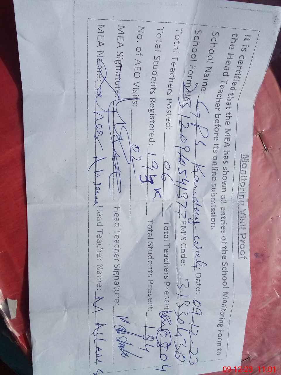 | EMIS Code: 31330438 | Name of School: GPS KANDY WALI | |||