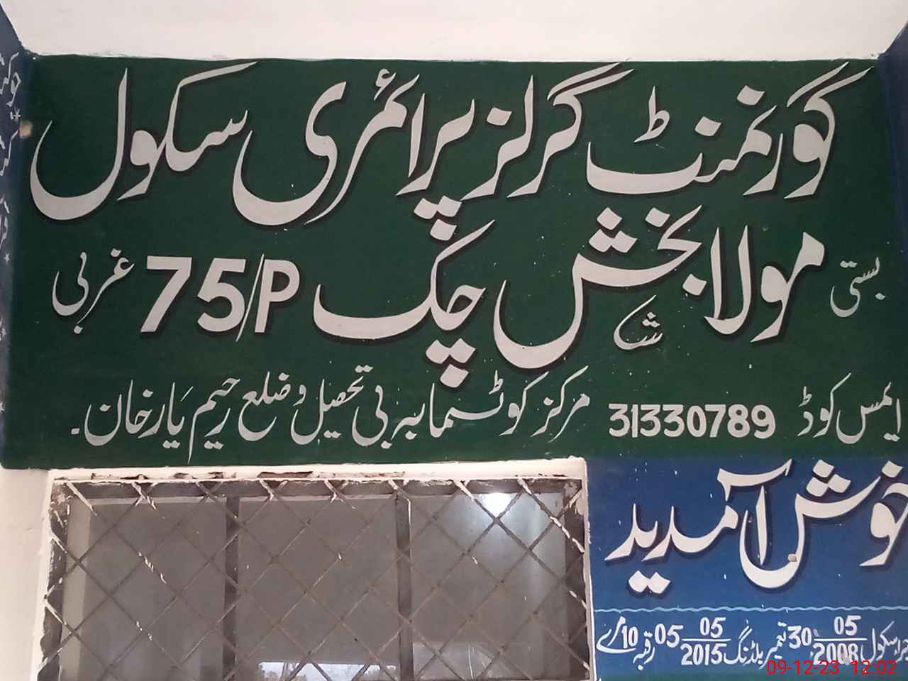| EMIS Code: 31330789 | Name of School: GGPS BASTI MOLA BAKHSH | |||