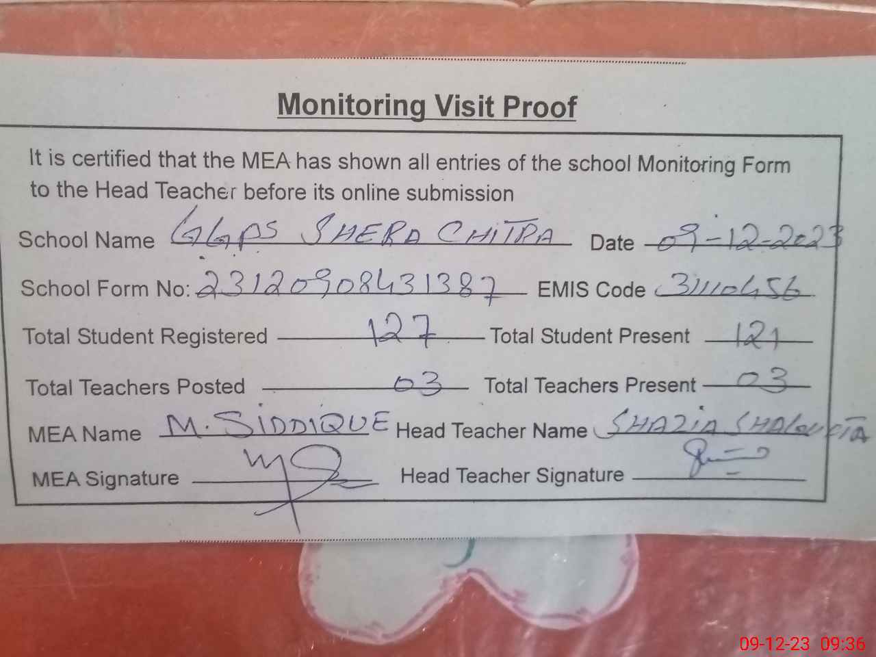 | EMIS Code: 31110456 | Name of School: GGPS SHERA CHITRA | |||