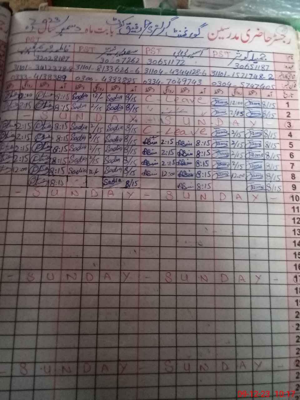| CNIC | Full Name | Designation | R/C | Absence During Last Calender Month |