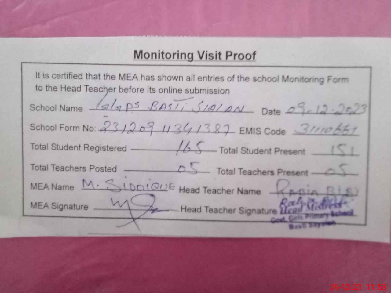 | EMIS Code: 31110661 | Name of School: GGPS BASTI SIALAN | |||
