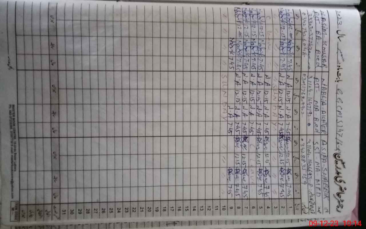 | Name: AS**** SH**** Designation: (School Headmaster's/Headmistress's) S.S.T.(ARTS) Phone/Cell Number: 03**** |