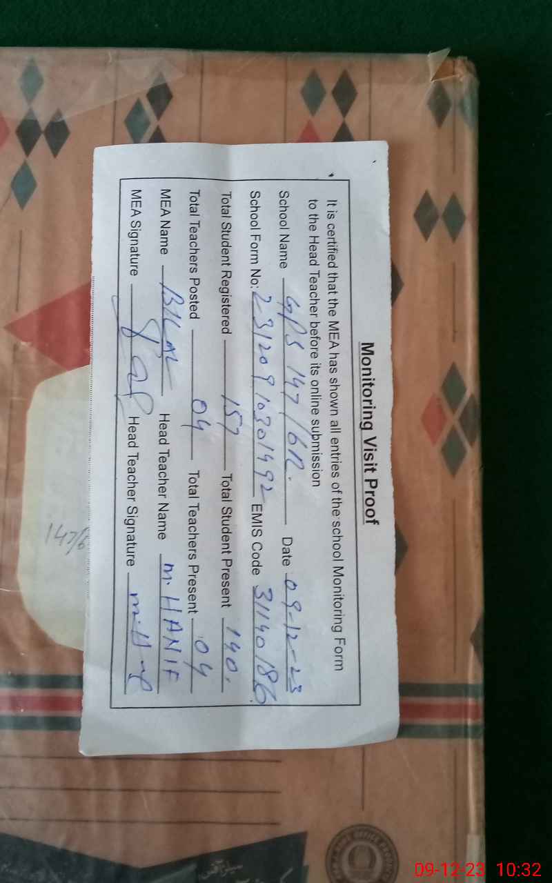 | EMIS Code: 31140186 | Name of School: GPS CHAK NO. 147/6-R | |||