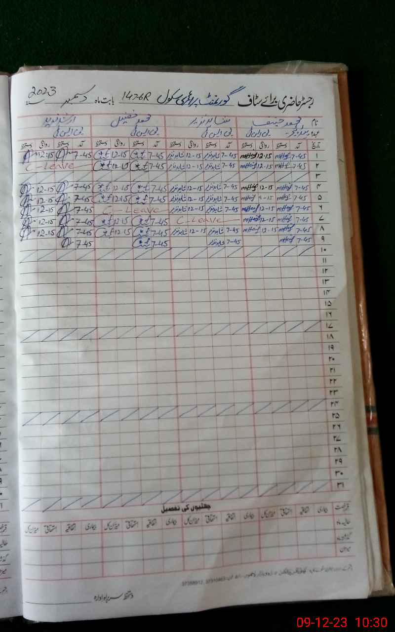 | CNIC | Full Name | Designation | R/C | Absence During Last Calender Month |