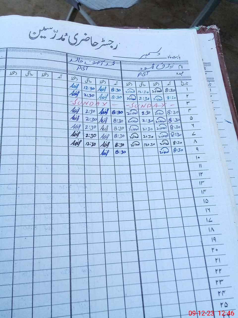 | CNIC | Full Name | Designation | R/C | Absence During Last Calender Month |