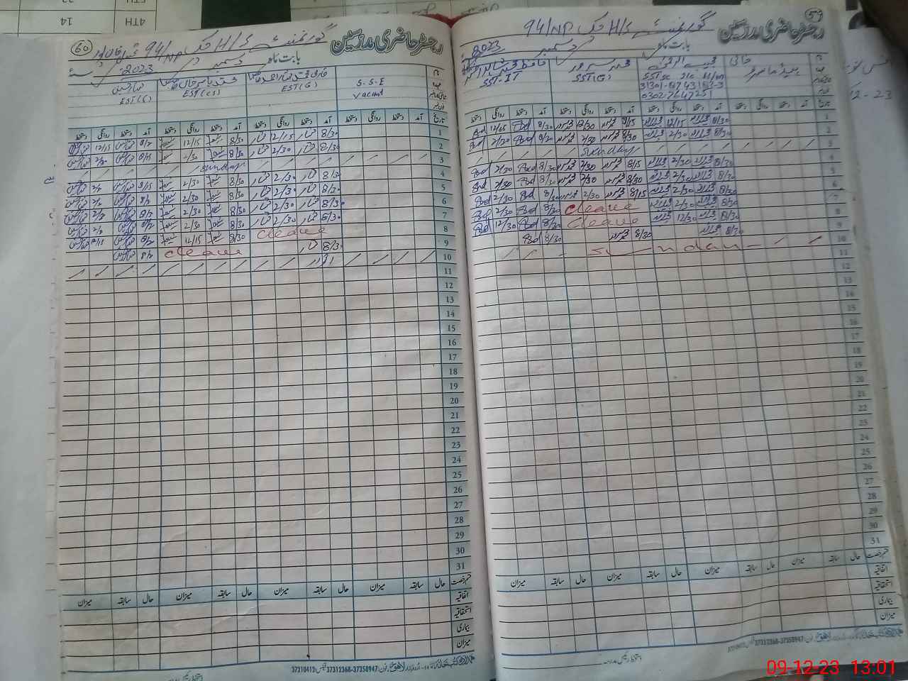 | CNIC | Full Name | Designation | R/C | Absence During Last Calender Month |