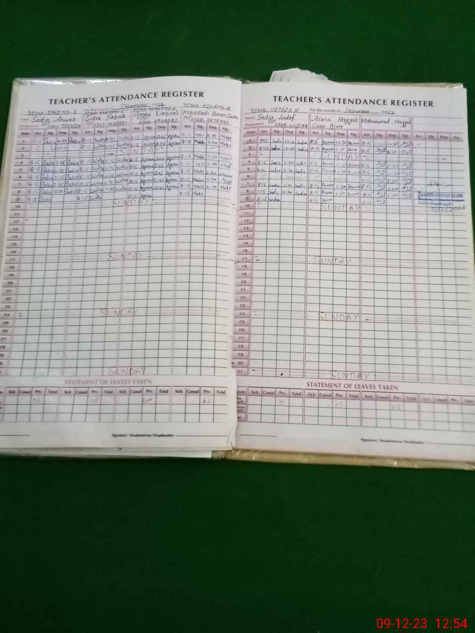 | CNIC | Full Name | Designation | R/C | Absence During Last Calender Month |