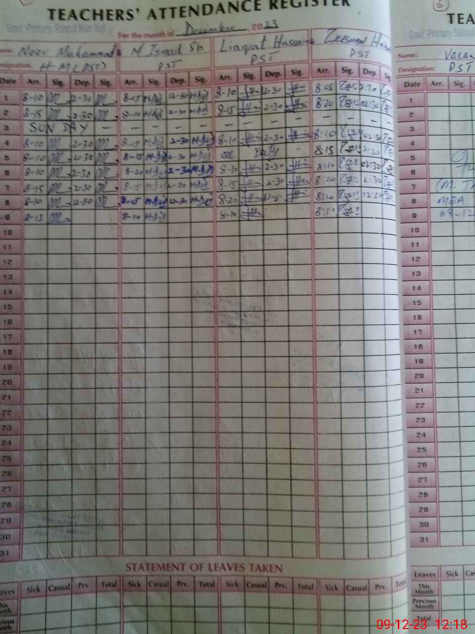 | CNIC | Full Name | Designation | R/C | Absence During Last Calender Month |