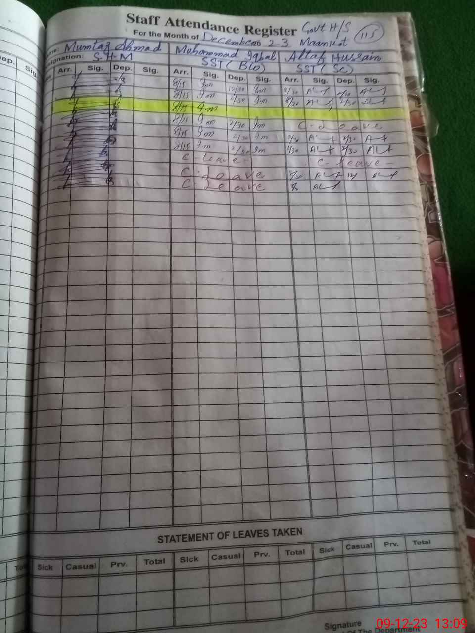 | CNIC | Full Name | Designation | R/C | Absence During Last Calender Month |