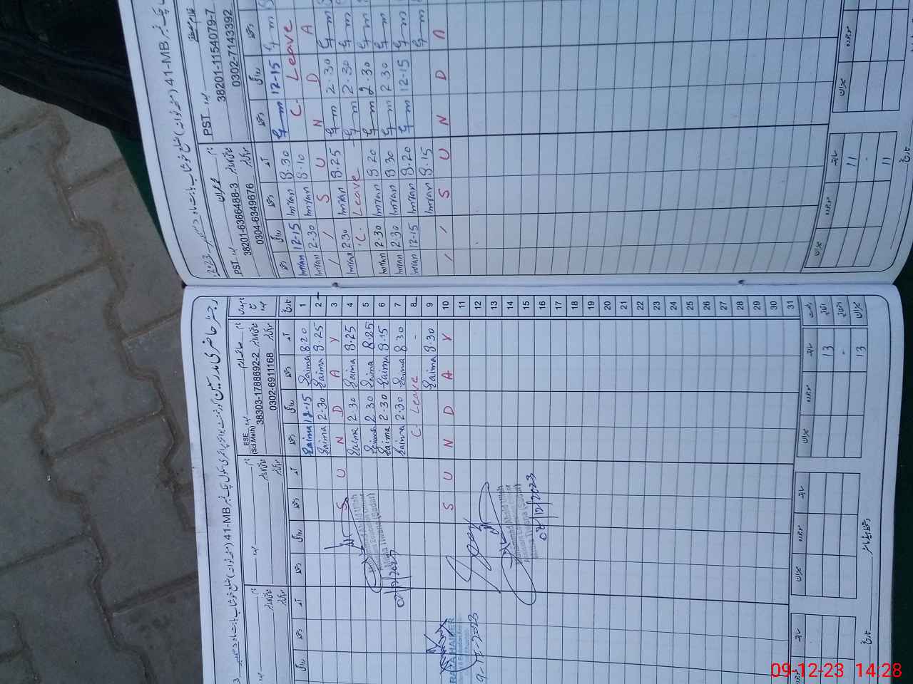 | CNIC | Full Name | Designation | R/C | Absence During Last Calender Month |