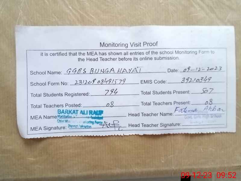 | Certified that this School was Inspected by the Undersigned MEA/DMO Today and the Information Stated Above is as Per Record. | |||||