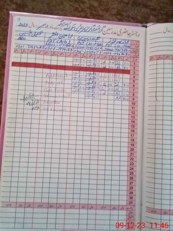 | Name: SH**** NA**** Designation: (School Headmaster's/Headmistress's) PST Phone/Cell Number: 03**** |