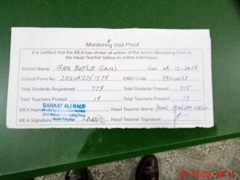| EMIS Code: 39210033 | Name of School: GHS BOYLE GANJ | |||