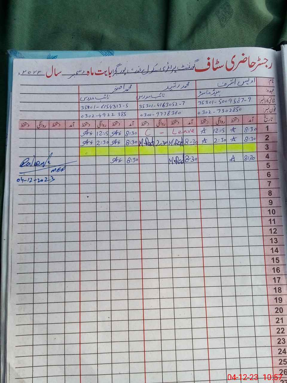 | Name: Mu**** Ak**** Designation: (School Headmaster's/Headmistress's) PST Phone/Cell Number: 03**** |