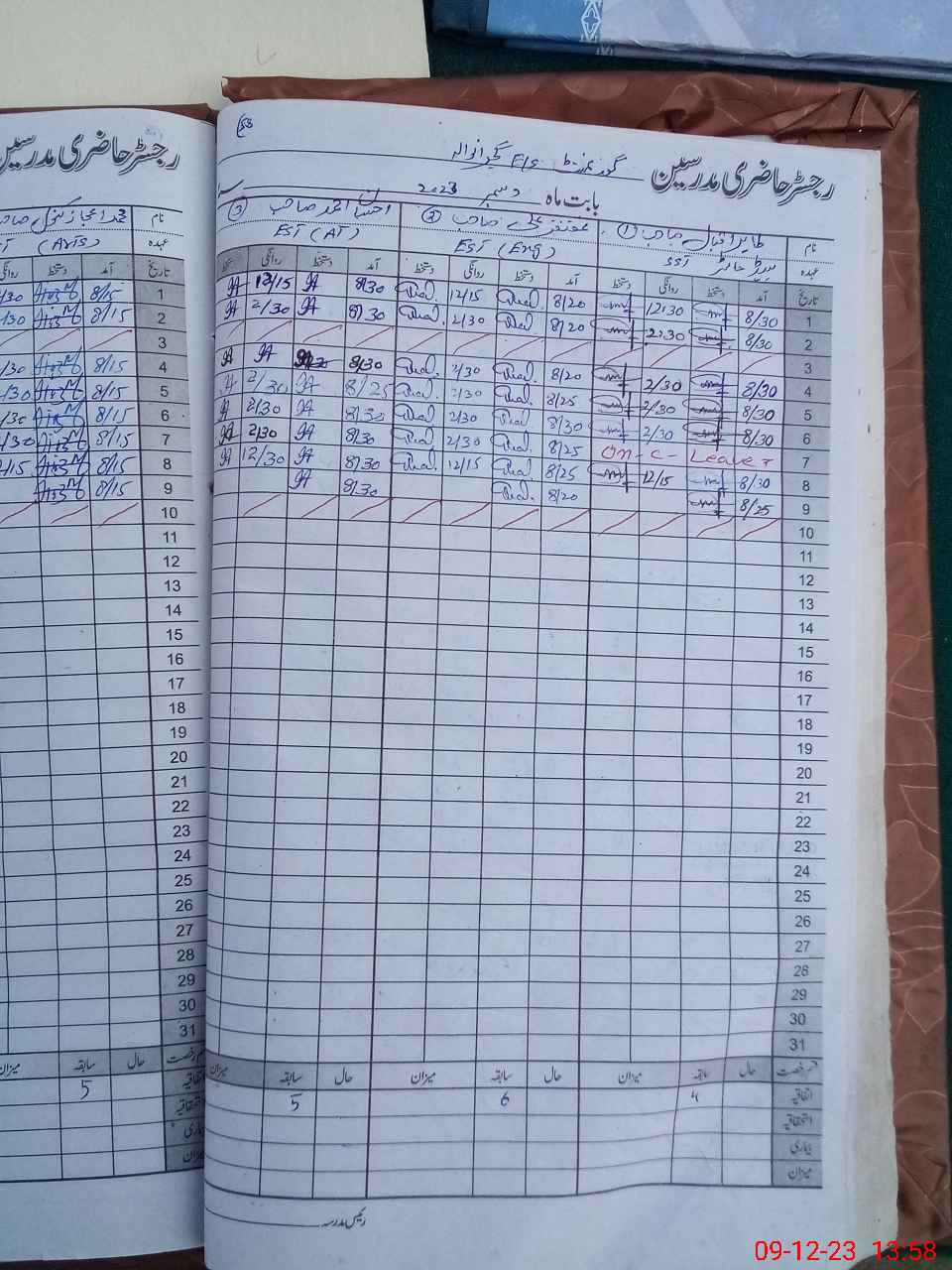 | CNIC | Full Name | Designation | R/C | Absence During Last Calender Month |