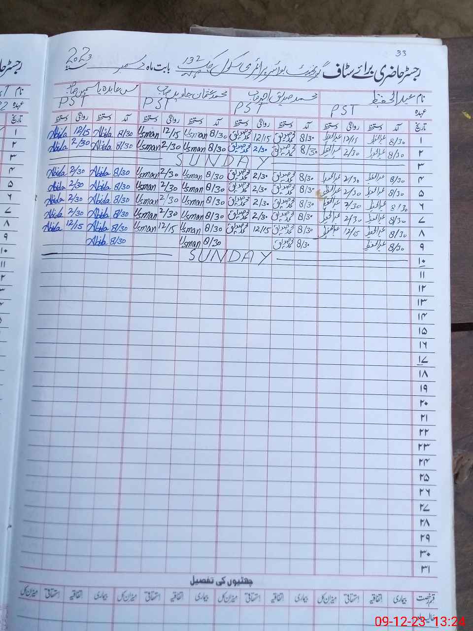 | CNIC | Full Name | Designation | R/C | Absence During Last Calender Month |