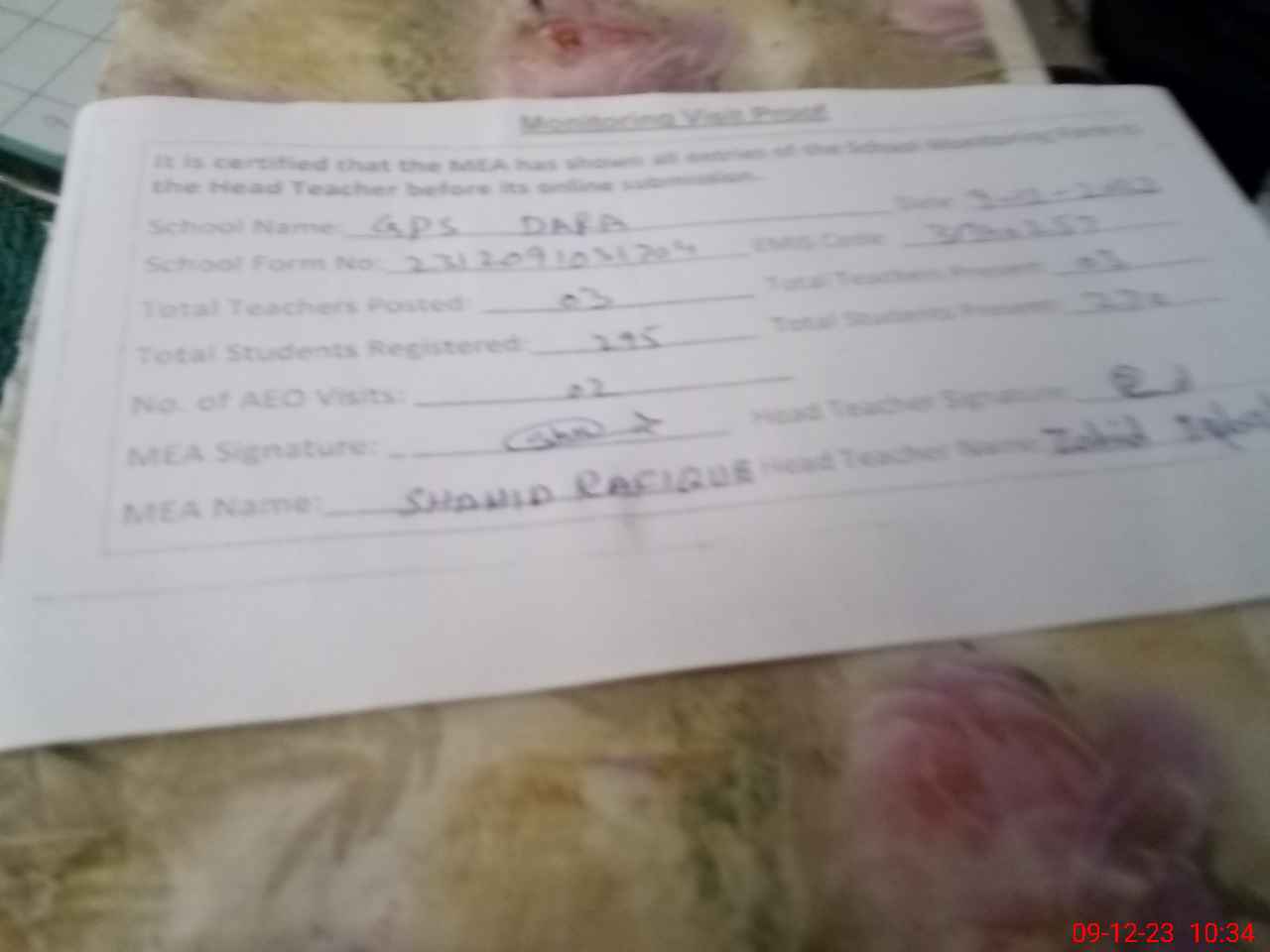 | Certified that this School was Inspected by the Undersigned MEA/DMO Today and the Information Stated Above is as Per Record. | |||||