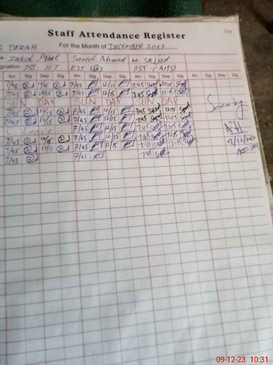 | Name: Za**** Iq**** Designation: (School Headmaster's/Headmistress's) PST Phone/Cell Number: 03**** |