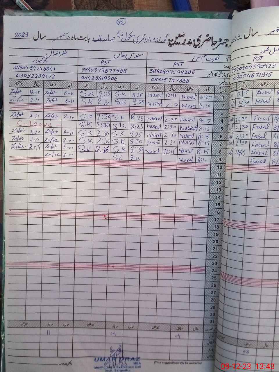 | Name: MU**** IM**** Designation: (School Headmaster's/Headmistress's) PST Phone/Cell Number: 03**** |