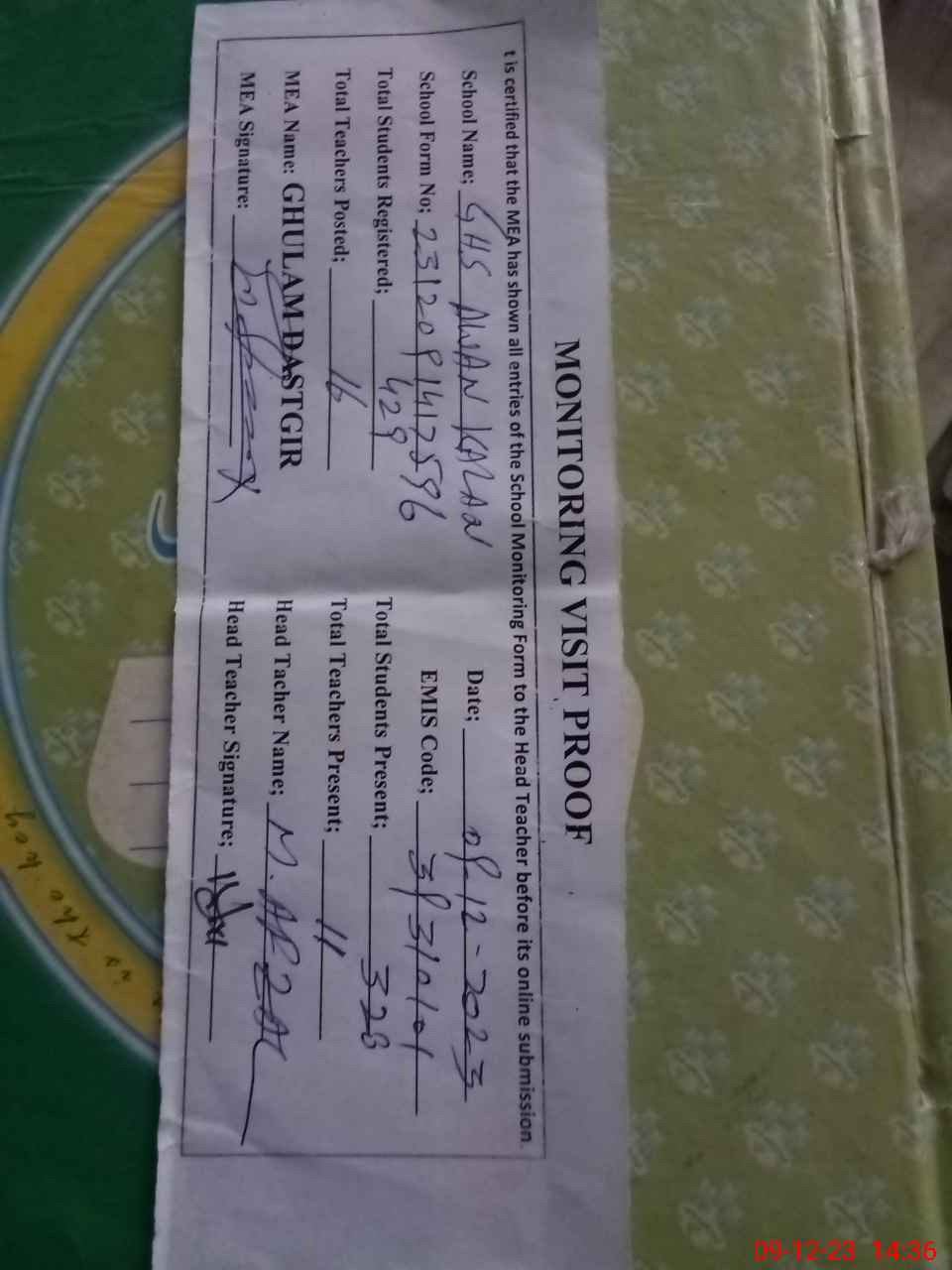 | EMIS Code: 39310101 | Name of School: GHS AWAN KALAN | |||